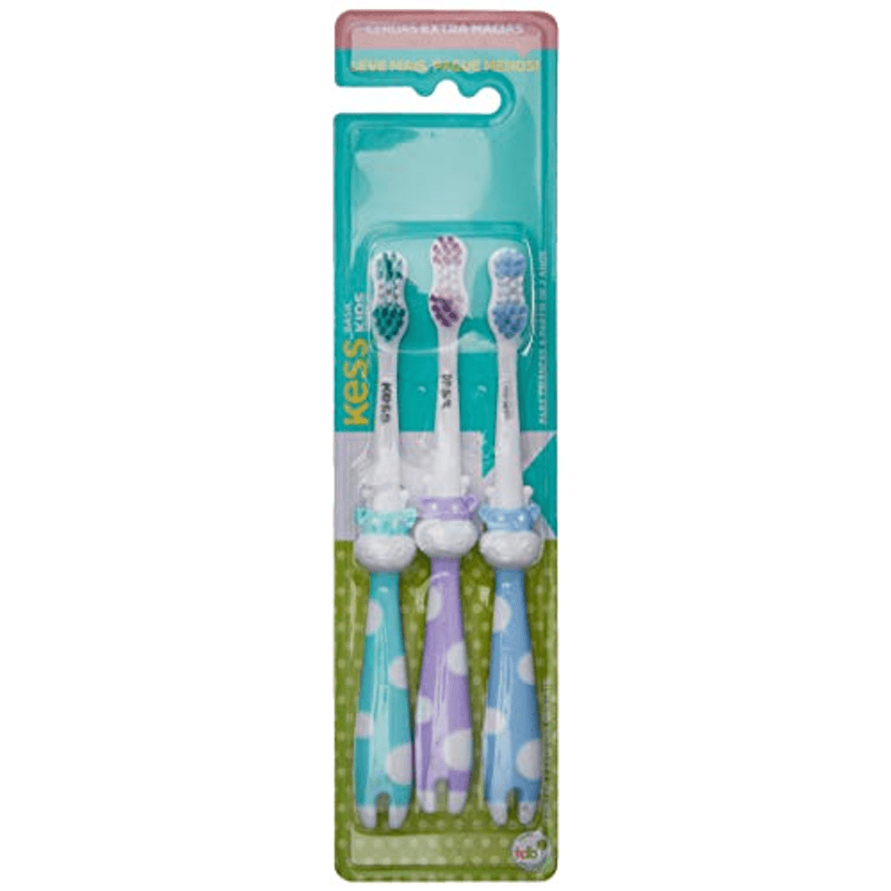 Escova De Dentes Kess Junior P-2540 Para Crianças, Cerdas Macias, Design Divertido E Proteção Da Saúde Bucal.