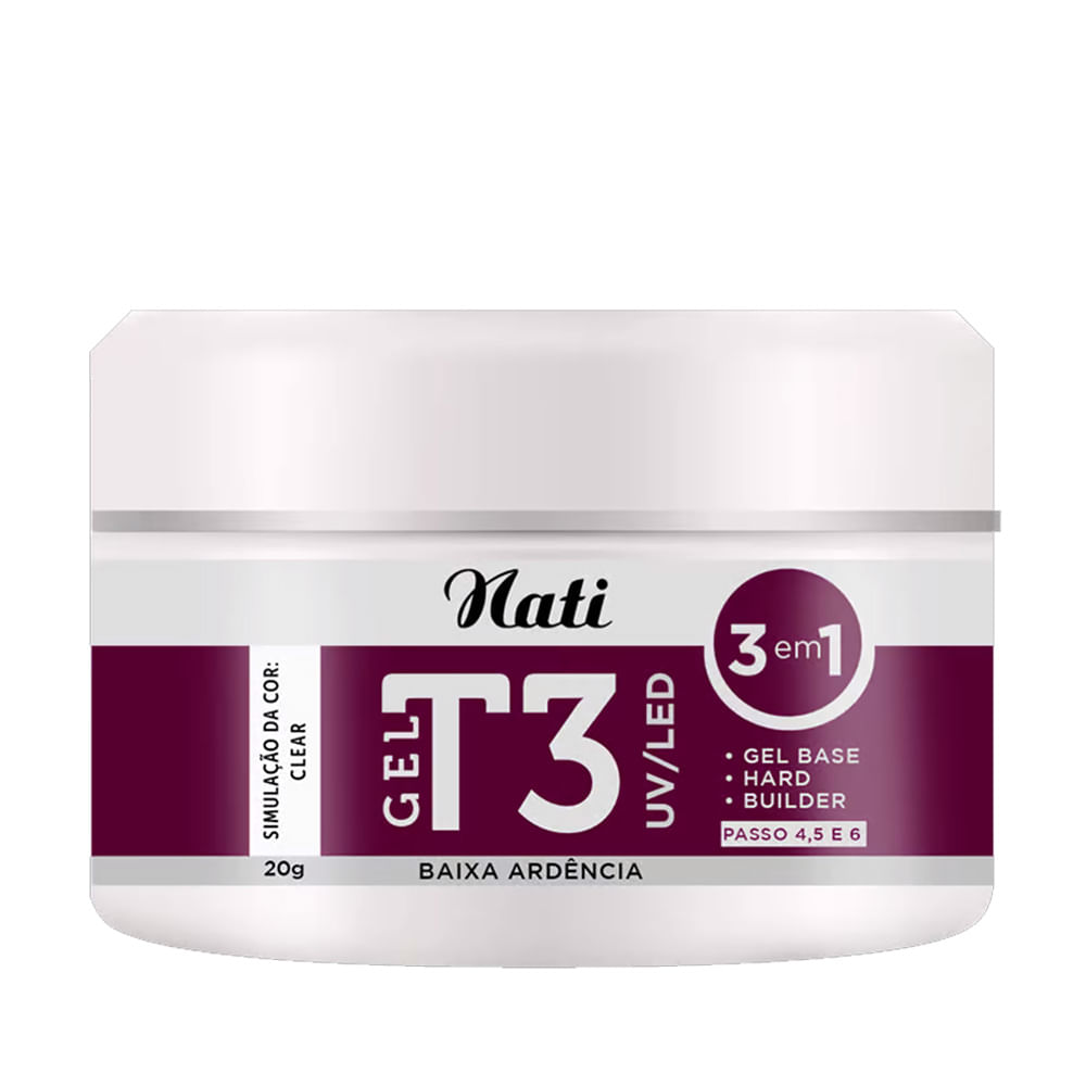 Para cuidar das suas unhas temos Gel para Alongamento de Unhas T3 UV/LED Clear Nati 20g. Conheça toda a linha de produtos de NATI