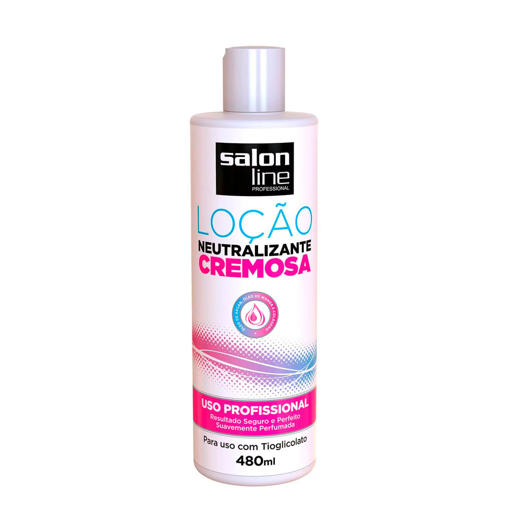 A Loção Neutralizante Cremosa foi especialmente desenvolvida para ser usada após o alisamento e o relaxamento de Tioglicolato. O uso é obrigatório e indispensável para alcançar um resultado perfeito, pois ele fará a interrupção da ação do processo químico e será responsável pela fixação da nova forma dos cabelos.PRINCIPAIS ATIVOS:nbsp;Sua fórmula é enriquecida com óleo de argan, óleo de manga e colágeno para os cabelos, nutre e condiciona os fios, garantindo brilho e maciez.MODO DE USAR:nbsp;Após completar o tempo de ação do alisamento ou relaxamento com Salon Line Tioglicolato, lave os cabelos com água morna ou fria em abundância. Em seguida, aplique a Loção Neutralizante Cremosa distribuindo por todo o cabelo. Deixe agir por 10 minutos. Enxágue abundantemente. Utilize um shampoo e condicionador da linha Salon Line para o seu tipo de cabelo.