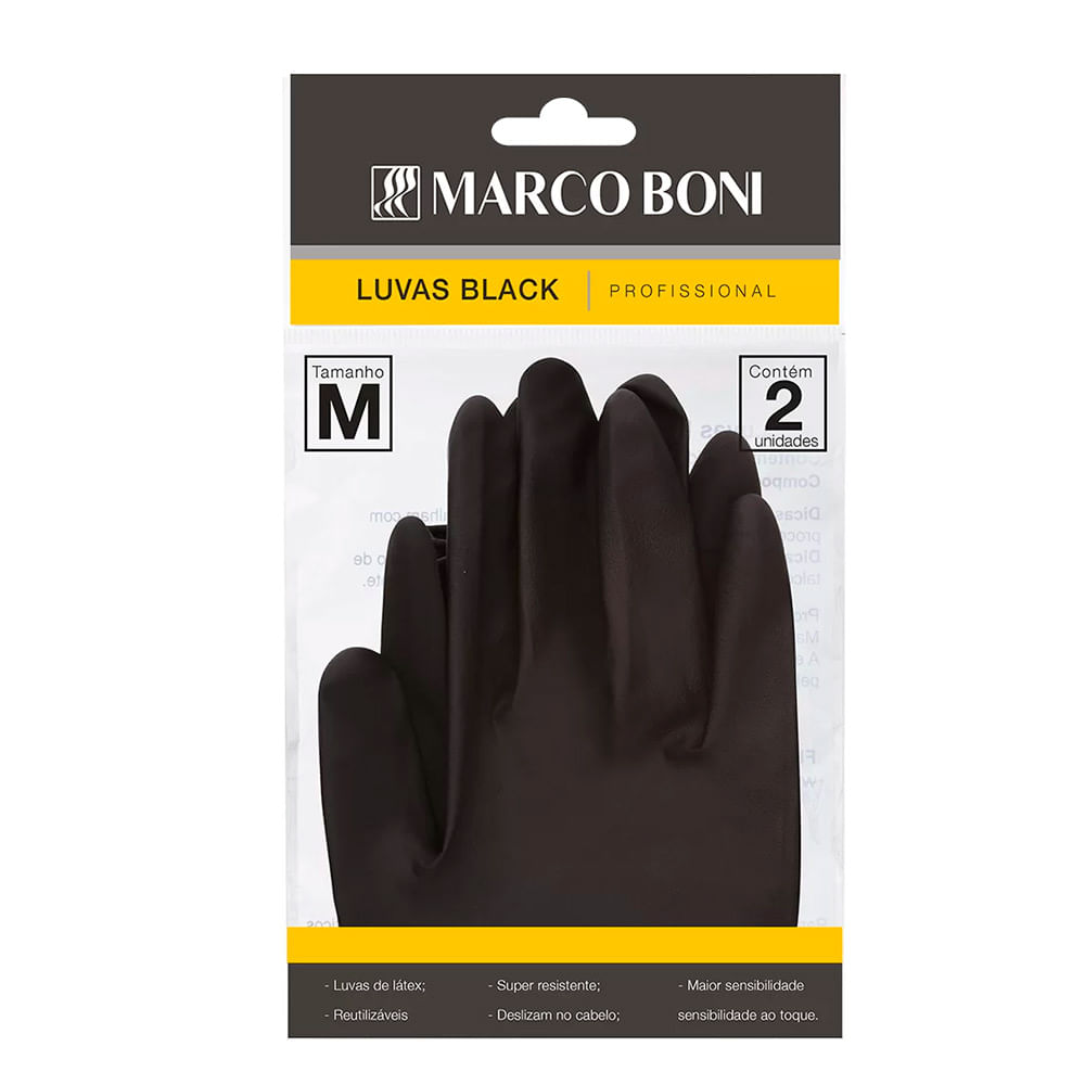 Luva De Látex Black Média Marco Boni 10 Unidades
